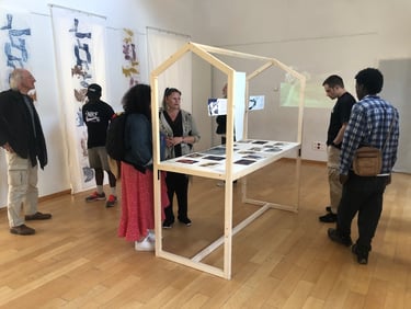 Conception de la structure et installation réalisées en collaboration avec l’architecte d’intérieur Amandine Le Corre dans le cadre de l'exposition de fin résidence à la maison de quartier Madeleine Champ de Mars.