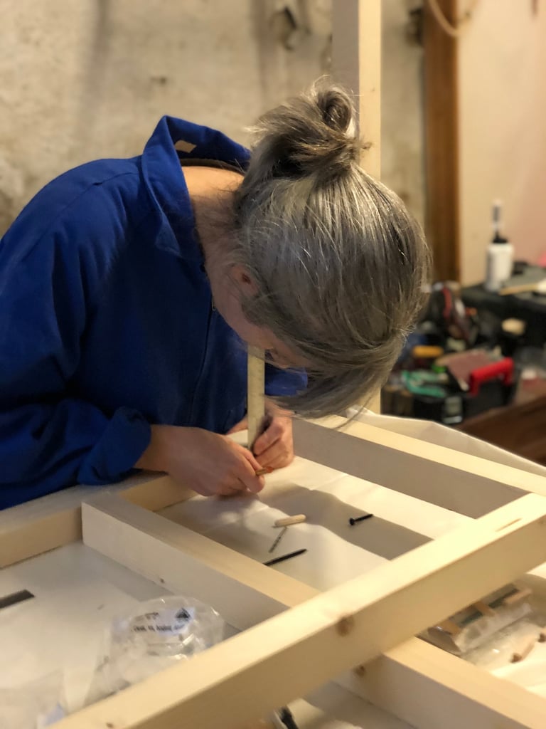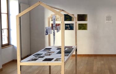 Conception de la structure et installation réalisées en collaboration avec l’architecte d’intérieur Amandine Le Corre dans le cadre de l'exposition de fin de résidence à la maison de quartier Madeleine Champ de Mars, en 2024.