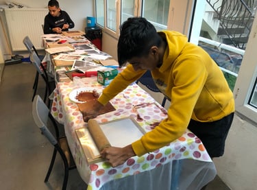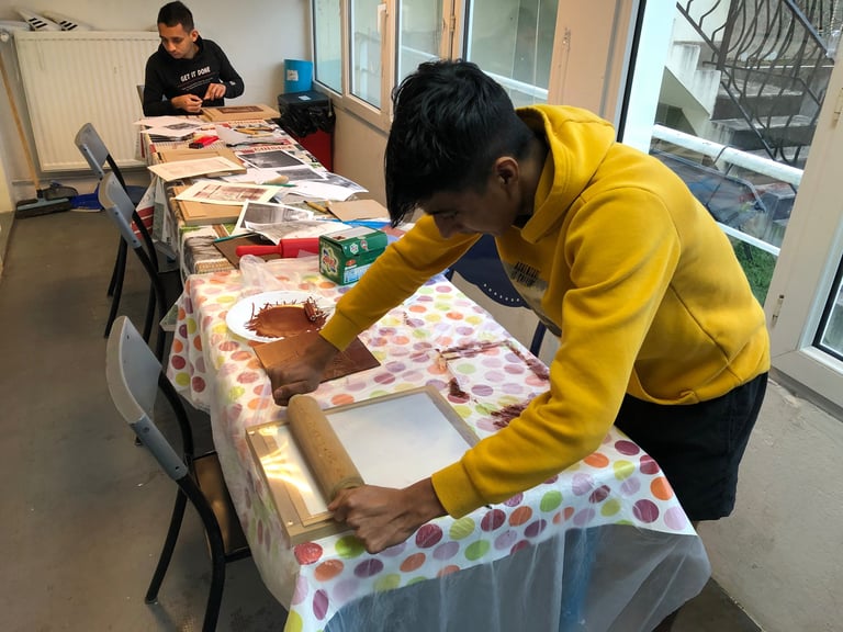 Peu de temps après ma formation au CFPI de la HEAR à Strasbourg (Centre de Formation des Plasticiens Intervenants de la Haute École des Arts du Rhin), je me suis rapproché du foyer d’hébergement d’urgence de Doulon - Association Saint Benoît Labre à Nantes et de proposer à des jeunes mineurs non accompagnés un projet de création partagée. J’ai ainsi développé et mis en place un dispositif créatif participatif qui avait pour ambition de permettre aux jeunes de s’exprimer sur leur quotidien à travers différentes formes plastiques.