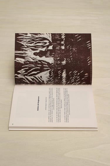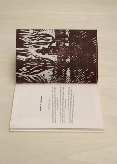 Couverture réalisée à partir de tirages originaux. Tirages linogravure, couches d’impressions multiples sur papier _ 20 ex, 2020/2021.